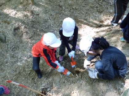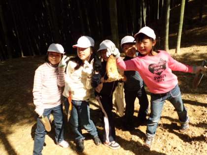 「見てみて〜!顔より大きいのとれた!」「長い!!」など、次々歓声が上がっていました。掘ったたけのこをワッショイワッショイしている班があちこちに見られます。次々に大きく、美しいたけのこが掘れるのを見て、本当に質の良いたけのこを提供して下さっているんだなと感じ、本当にありがく感じました。