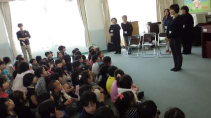 図書ボランティアさんによる「お話の会」がありました。今日は手遊びと,「とんとんとん」という絵本の読み聞かせをしていただきました。子どもたちは,「だれかなー?」という問いかけに,「きつね!」「いのしし!」と元気よく答えていました。