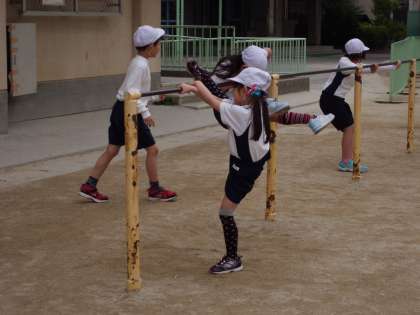 「今日は足ぬきまわり10回やるぞ!」,「逆上がりの練習をしよう。」とそれぞれ自分のめあてをもって取り組んでいました。