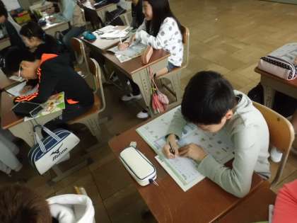 ワークを使って,包丁の使い方の学習をしました。