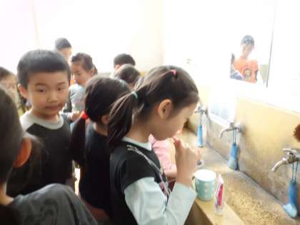 今年度は,給食終了間近に「歯みがき チャチャチャ〜♪」というノリの良い音楽が流れるようになり,子どもたちも音楽を聴きながら楽しんで歯みがきをしています。