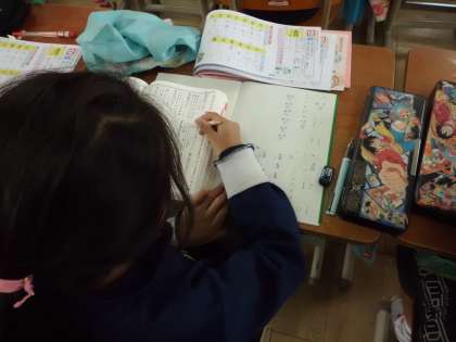 漢字を書くだけではなく,どんな言葉に使われているのかなどを国語辞典を使って調べながら学習しています。