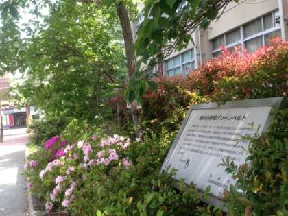グリーンベルトを美しく保つために,児童会で,立て札で呼びかけています。
