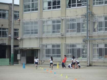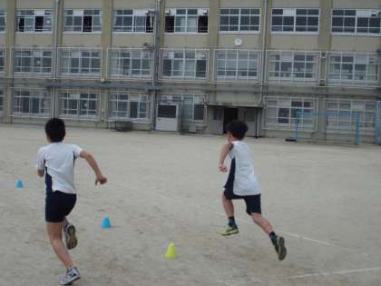 5年生と合同で,反復横とび,長座体前屈,立ち幅跳び,上体おこし,ソフトボール投げの記録を測定しました。その他,50m走のタイム,握力を各学級ごとに測りました。
