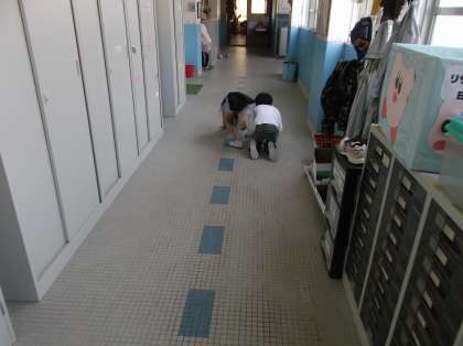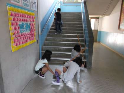 長い廊下や階段の掃除もがんばっています。