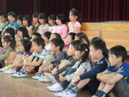 1年生は,お兄さん,お姉さんの発表に引き込まれていました。