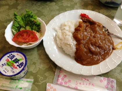 淡路島の玉ねぎがたっぷり入ったカレーライスと,サラダ,ヨーグルトでした。