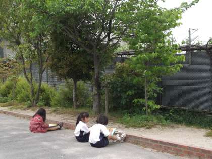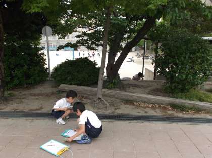 校内にあるたくさんの木の中から好きな木を選び,1年間観察し記録していきます。