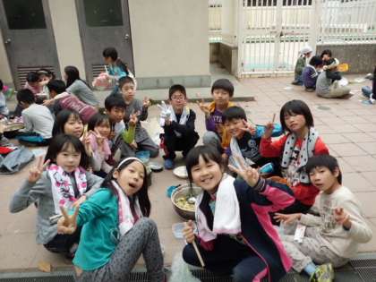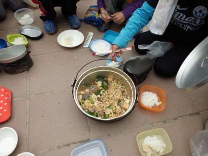 ついに完成です!班のみんなと「いただきま〜す!」みんなもりもりおかわりしていっぱい食べました。この調子で本番も頑張ってね。