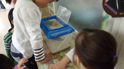 クラスの子がヤゴを持ってきてくれました。休み時間は,虫カゴの前で押し合うように観察をしていました。「このわりばしをのぼっていくんだよ。」「何を食べるのかな?」みんな進んで生き物のお世話をしてくれそうです。