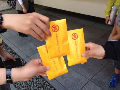 ここでしか買えない『幸福の黄色いお守り』を買っている子どももいました。