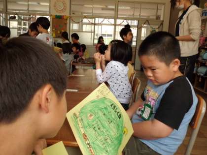 1年生と2年生合同で「なかよし会」を開きました。2年生からの言葉を聞いた後,自己紹介カードを交換しました。お兄さんからカードをもらってニコニコ笑顔のわかばっ子でした。