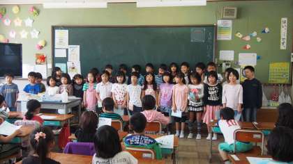 まず初めは,2年生からのあいさつです。朝から緊張していた2年生ですが,上手にあいさつできていましたよ。