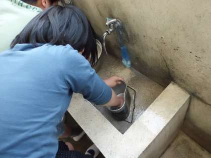炭で黒くなった飯盒や鍋は,なかなかきれいになりませんでしたが,たわしなどでがんばってこすりました。