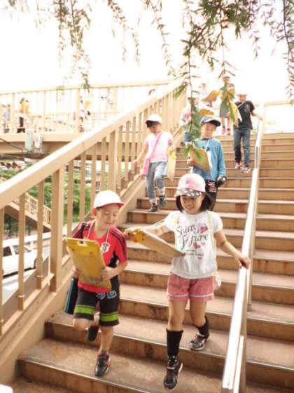 社会科の学習で町探検に行きました。今回は第一回目ということで、