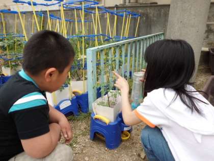 毎日野菜の成長を楽しみにしているわかばっ子です。水やりも意欲的にしていますよ。