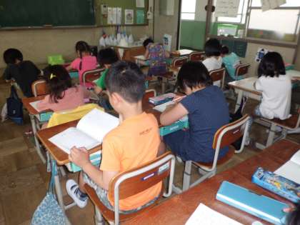 水族館でどんな物を見たのかをみんなで思い出してから,文章を書き始めました。