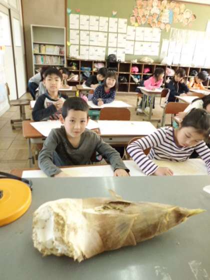 子どもたちから竹の子先生へお手紙を書き、今回はそれを渡させていただきました。「掘った竹の子はお母さんに竹の子ごはんにしてもらったよ。おいしかったです。」「竹の子は苦手だったけど、おいしかった。」「友だちと協力して掘ったよ。難しかった。」など、竹の子と触れた子どもたちの生き生きとした気持ちがよく表れていました。竹の子先生が、当日の写真や手紙を目を細めて嬉しそうに見入ってくださっていたのが印象的でした。
