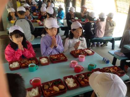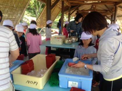 あづまやで、お昼ご飯です。気持ち良い風が吹いています。