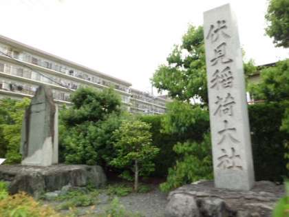 しばらく歩くと、伏見稲荷大社の石碑があったり、少し中に入ると緑が多い住宅が多く