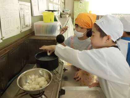 できあがったお団子は浮いてきます。「あ!浮いた!!」と大喜びの子どもたちでした。