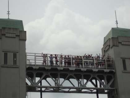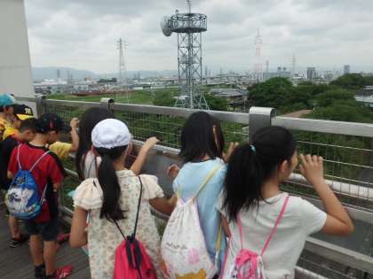 資料館で学習した後は,三栖閘門の展望台に上りました。螺旋階段を上って行くと,きれいな景色が見えました。伏見城や京都タワー,宇治川もきれいに見えました。