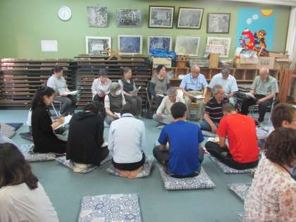 砂川小学校運営協議会は,「伝統文化委員会」「読書活動委員会」「学校安全委員会」「体育活動委員会」「地域家庭教育委員会」「学習向上委員会」の六つの委員会があります。今日は総会で,それらの委員会を運営していただいている方々や教職員が集まりました。学校からは学校教育目標の説明をし,その後,今年度の計画や今後の運営について話し合いました。