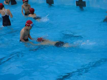 バタ足コースでは,ビート板を使ったり,友だちに手助けをしてもらったり,「けのび」や「ふしうき」の練習をがんばっていました。