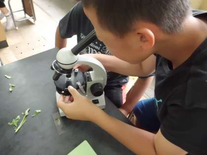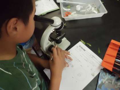 観察するために,葉をねじるようにしてそっと手前にひく作業があるのですが,その作業に苦戦している子もいましたが,ピントを上手に合わせて,きれいに気孔を観察することができました。