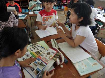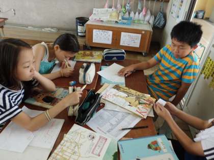 国語では「ようこそ,わたしたちの町へ」という学習で,自分たちの町を紹介するパンフレット作りを進めているところです。