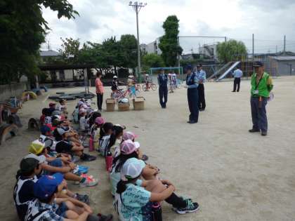 まずは,婦警さんからコースの説明や自転車を乗る時の注意などをしていただきました。
