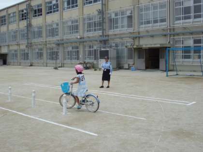 ブレーキをかけながら曲がらないといけないのですが,なかなか難しく足を下についてしまう子もいました。