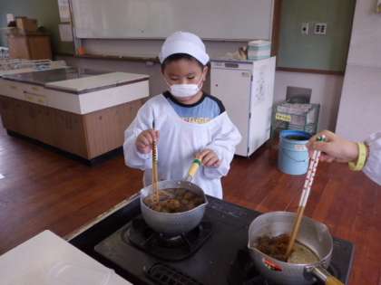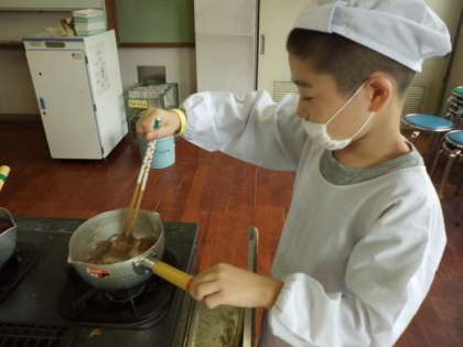 瓶から取り出した梅を鍋に入れて,梅がひたひたになるぐらいの水と少量の砂糖を加えてぐつぐつ煮ました。梅のさわやかな香りにうっとりのわかばっ子でした。