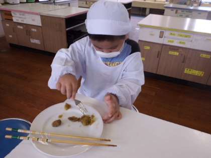 梅がやわらかくなったら一旦鍋から取り出して,種を取り除きました。そして,また鍋に戻してとろみがつくまでコトコト煮ます。冷めるとかたくなるので,「少しゆるめかな?」と思う時に火を止めるのがポイントです。