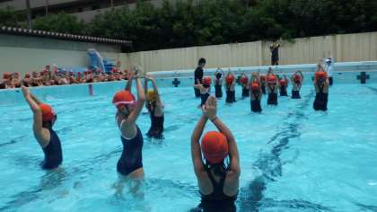今日は,最後の「水あそび」でした。来週,着衣泳をしたら,プールは終わりです。今日は,浮きが出来るか挑戦しました。10秒浮ける子どももだいぶ増えてきました。力を抜いて,水の中でもリラックスできるように声かけしています。