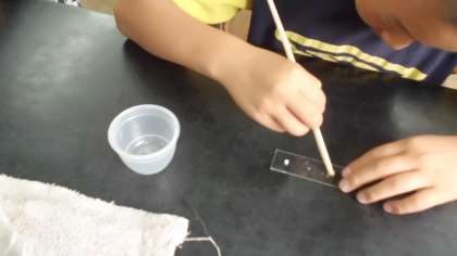食事をした時に,食べ物の中の養分や水分はどのように体の中に取り入れられるのかを調べるために,ご飯粒を使った実験を行いました。
