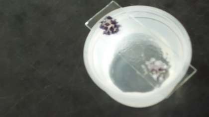 両方にヨウ素液をかけると,水をかけた方はご飯に含まれるでんぷんに反応して紫色になったのに比べ,唾液の方には反応が起こりませんでした。