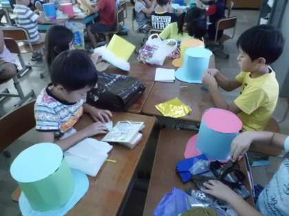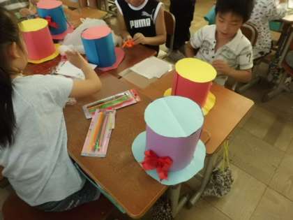 普通の色画用紙から,帽子の形を作ることができました。