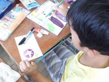 国語「手紙を書こう」の単元で、暑中見舞いの葉書きを書きました。