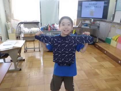 道徳の時間に「大切な命」の学習をしました。お母さんのお腹の中にいるときのこと,生まれてきたときのことなどを学習しました。まずはじめに砂袋をお腹に巻いて重さを実感したり,小さい頃の写真や服を見たりしました。その後おうちの方からの手紙を読み,大切に育ててもらっていることを感じることができました。なかには感動して涙を流す子どももいましたよ。