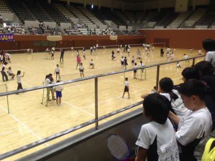 今日は,府立体育館でバドミントンの全市交流会がありました。