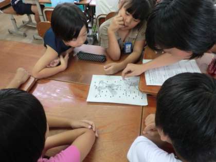 今日の集会では,11日の遠足のコースの説明をしてもらったり,目標を決めたりしていました。