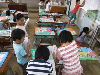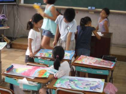 夏休み前に仕上がっていた絵の鑑賞会をしました。