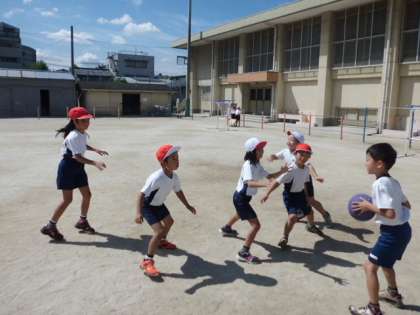 久しぶりのパスゲームでしたが,パスをするときに「○○くん!」と名前を呼んだり,パスの出し方をお友達に教えている姿がよく見られました。