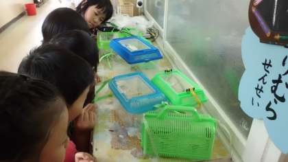 給食の用意をしていると,虫カゴからきれいな音が聞こえてきました。「あ!こおろぎが鳴いてる!」「すごくきれいな音だね。」「しー!静かにしないと,鳴いてくれないよ。」いつもはおしゃべりしながら食べている給食ですが,今日は,しんとした中でこおろぎの声を聞きながら食べました。ぜいたくな時間でした。
