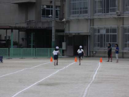 運動会に向けて、3年生全体で50m走のタイムを計りました。