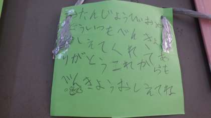 学級活動で,9月生まれのお誕生日会をしました。ハンカチおとしや人間バスケットをして楽しみました。遊び方や会の流れにも慣れてきて,仲良く時間を意識しながら遊べるようになってきました。お誕生日係の子たちが,バースデーカードを作ってくれました。