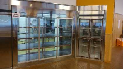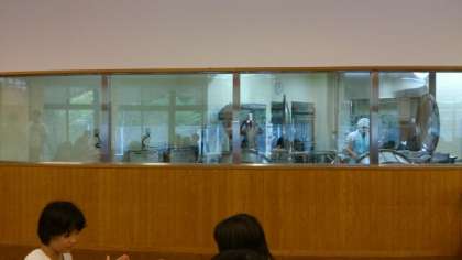京北第一小学校の給食室は、ガラス張りでした。