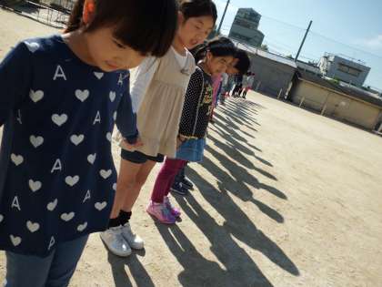 「かげおくり、やってみよう!」とみんなで手を繋いでかげおくりをしました。
