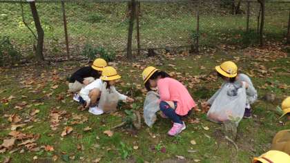 公園には,どんぐりだけでなく,きれいな模様に紅葉した葉っぱや,面白い形の木の実なども落ちていました。夢中になって手提げのナイロン袋に色んなものを入れていました。